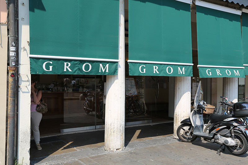 Also einfach auf den Laden mit der „GROM“-Markise achten!